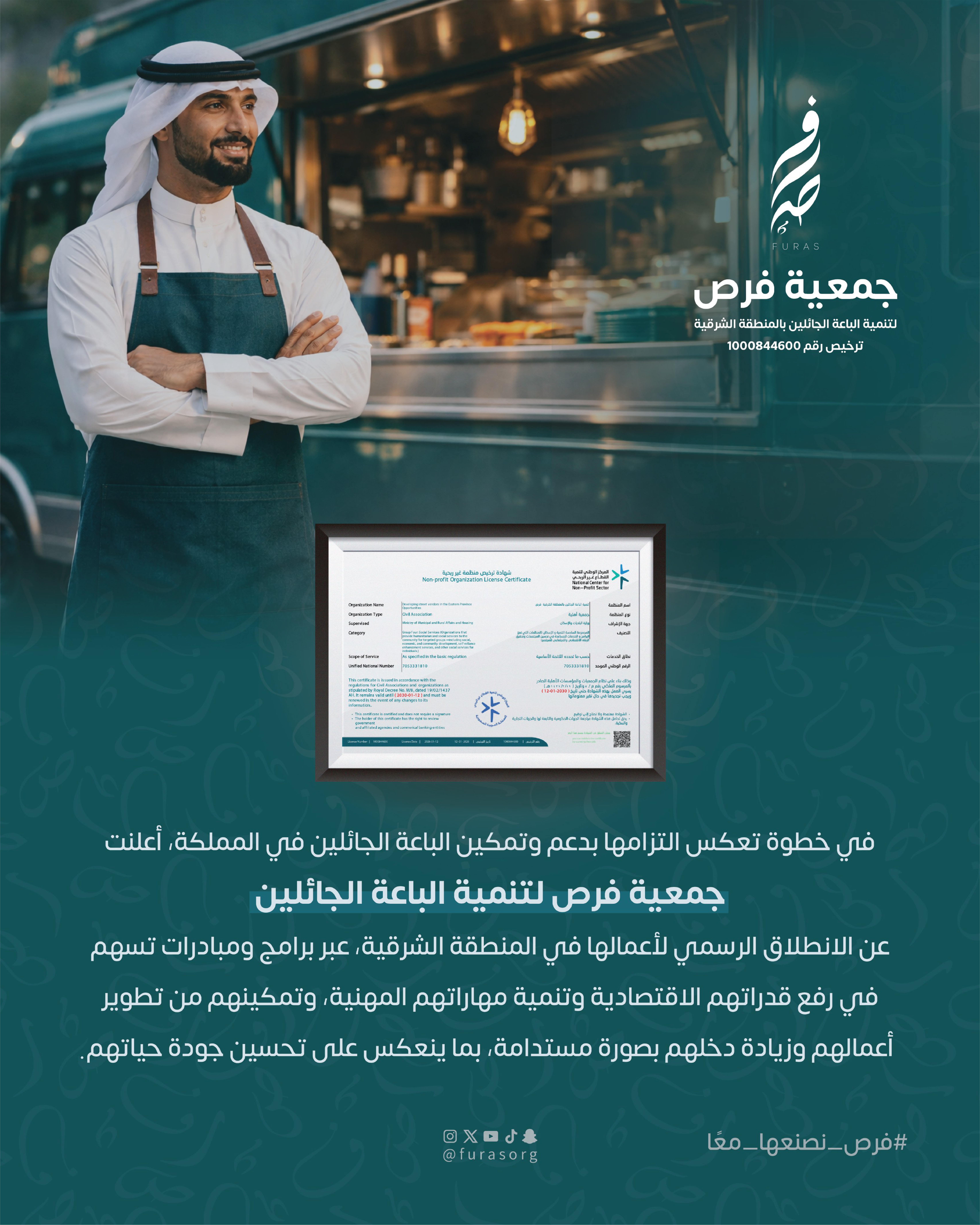 انطلاق أعمال جمعية فرص لتنمية الباعة الجائلين في المنطقة الشرقية